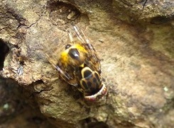 諦めていたところ、名前を教えて頂き大変うれしいです。 ハナアブの仲間のマドヒラタアブの一種ですね。 誠にありがとうございました。 |