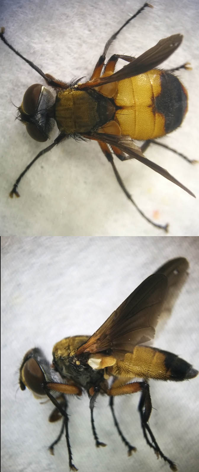 生態などの研究上かまとまった地方のヤドリバエ科の生物相的な研究の目的での同定で,しかも報文をちゃんと作成する場合は,国内(九州大学,九州大学総合研究博物館)に2名おられる本科の分類学者に同定を依頼することは可能かと思います.その場合でも標本が勿論必要です.写真での同定は正確を期すことはほとんど不可能です. |