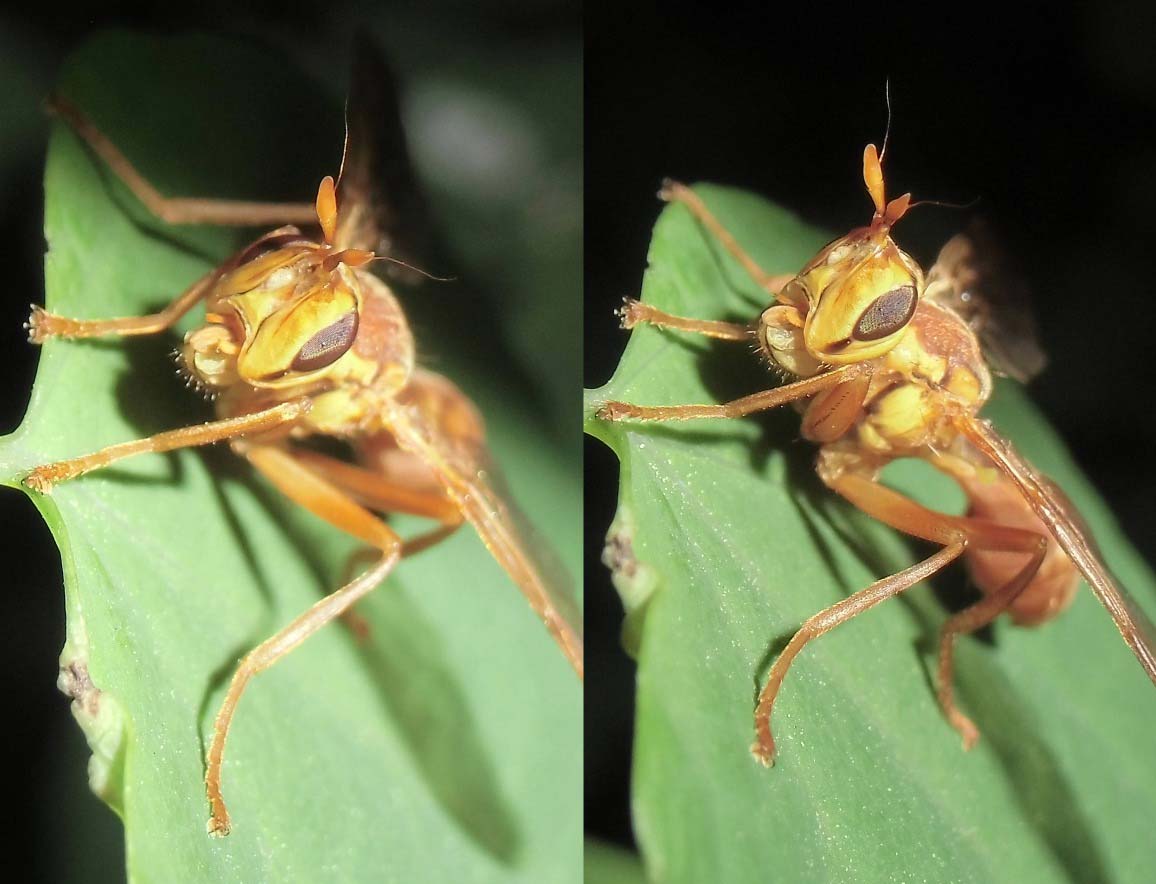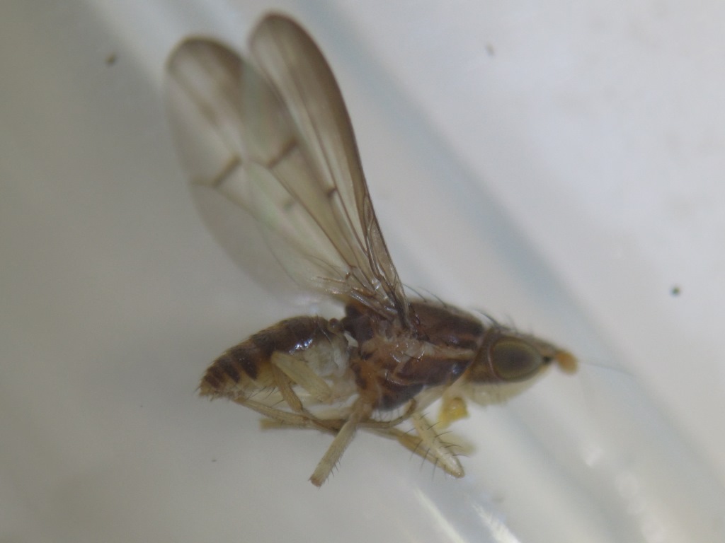 このハエは、以前私がお伺いを立てたシマバエと同じ種類ではないかと思います。No.5103からのスレッドを御覧下さい。 アーチャーン様コメントありがとうございます。 スレッド拝見しました。触角先端の形状から判断すると Luzonomyza属の一種となりますでしょうか。 頭部の拡大画像からもし判断できることがありましたら、 ご教示いただけますと幸いです。