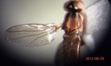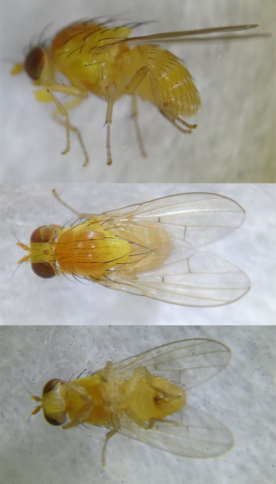 写真を見ると,翅の先端が暗化した体長約5mm程のPsilidaeのようなフンバエです.(ほんとにフンバエ?) 記載に使用した標本は全てオニノヤガラから羽化した標本とのこと. 記載者が昆虫を専門とする人ではないので,本文に体長の表記が無かったり,交尾器も平圧したプレパラートの写真だったりとかなり変わった論文でした. Kato, M., K. Tsuji & A. Kawakita (2006) Pollinator and stem- and corm-boring insects associated with mycoheterotrophic orchid Gastrodia elata. Annals of the Entomological Society of America 99 (5): 851-858.