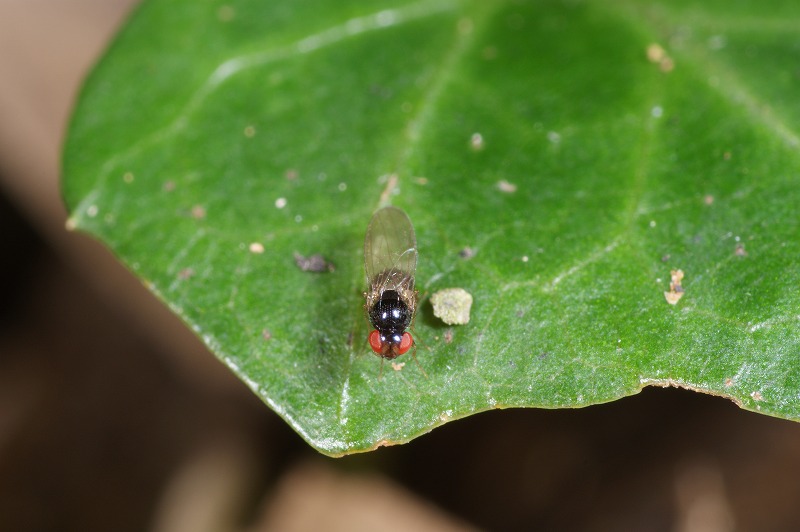 黄色系のショウジョウバエの中からキイロショウジョウバエ1種を同定するだけでも、具体的には標本を顕微鏡で観察しながら、翅の翅脈の相対比、頭部や胸部の刺毛の分布や方向、♂交尾器などを比較することが必須になります。ですから、野外で肉眼でキイロショウジョウバエを同定することは、実際は不可能なことです。もちろん生態写真からでも無理でしょう。 写真の黒いハエはショウジョウバエ科の1種です(経験的に)が、私は今に時点で属などの同定はできません。 おはようございます。オノニモミイアさん、詳しいお話ありがとうございます。 ある意味、予想通りというか、やはりまず捕まえるところしか始まらないのだなァということがわかりました。 そのうえでも、顕微鏡での撮影なんていうことになっていくのでしょうから、それも無理な話ではあるのですが。 推測では、広域に生育する、当たり前のハエのはずなのだけれど、どうもこういった花と密接な関係にあるというのは間違いないようなのですが。 観察するだけでも大変なので、その先は、実際むりかもしれません。 ありがとうございます。