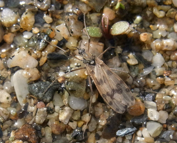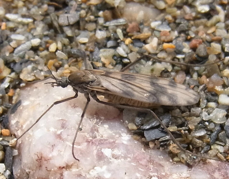 http://www.diptera.info/forum/viewthread.php?thread_id=25902&pid=115158 に、同じではなさそうですが、近い感じに見えるハエが載ってました。それはPsacadina sp. とありましたが、見当違いだったらごめんなさいです。