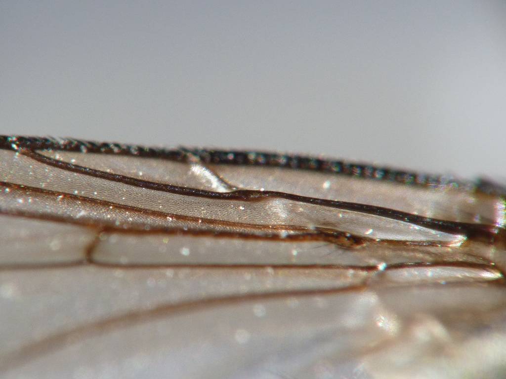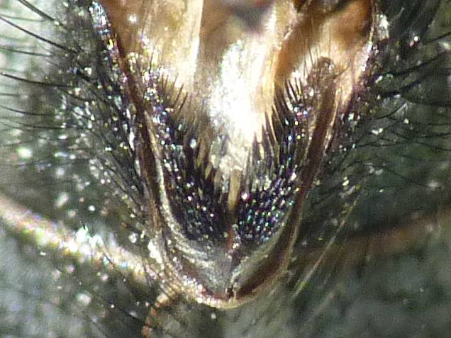 手元のD. japonicaやD. bibaxと思われる個体も,皆様同様discal britslesはありません. しかし,付図に描かれているとおりなので,私も問題ないと思ってます. また,複眼の微毛は,約30ミクロンほどの長さで,5-7facet毎に疎らに生えてますが,細く淡色の為かなり見辛いです.バックを黒にして,複眼を斜めにみると見えると思います.